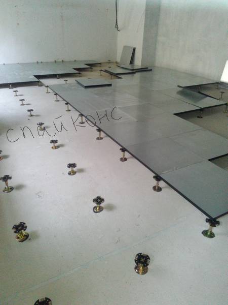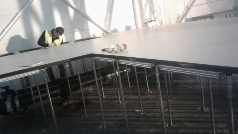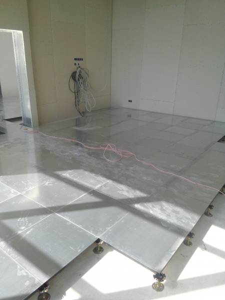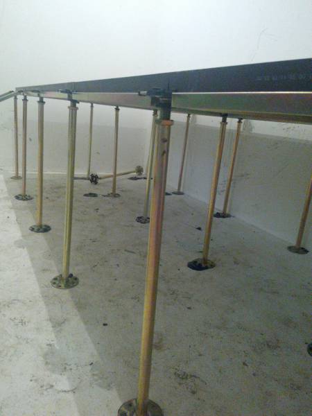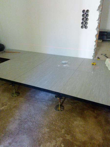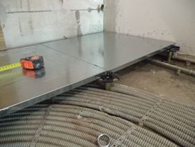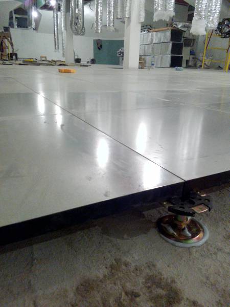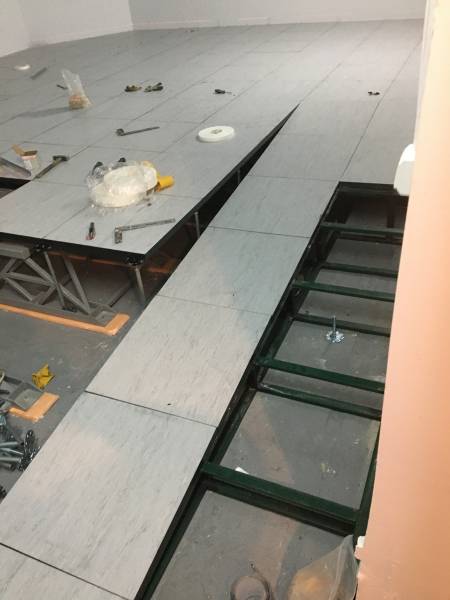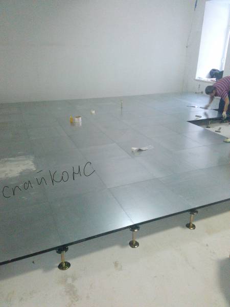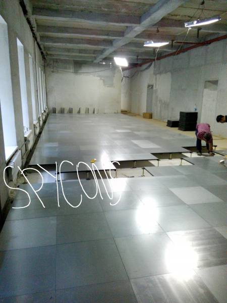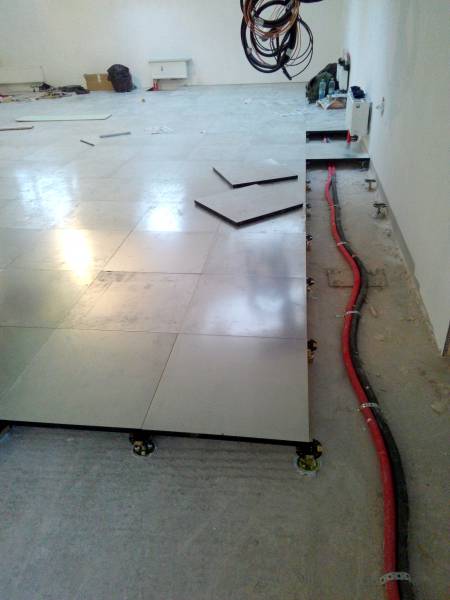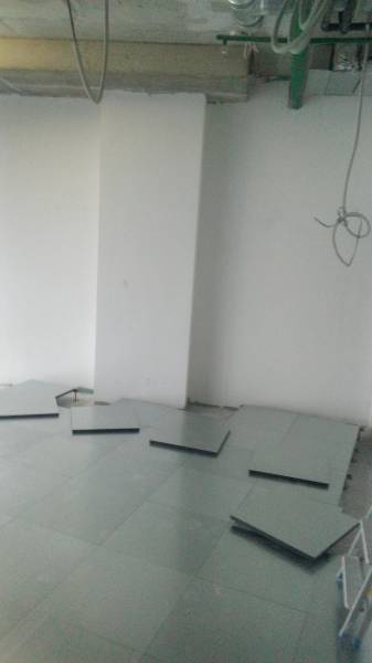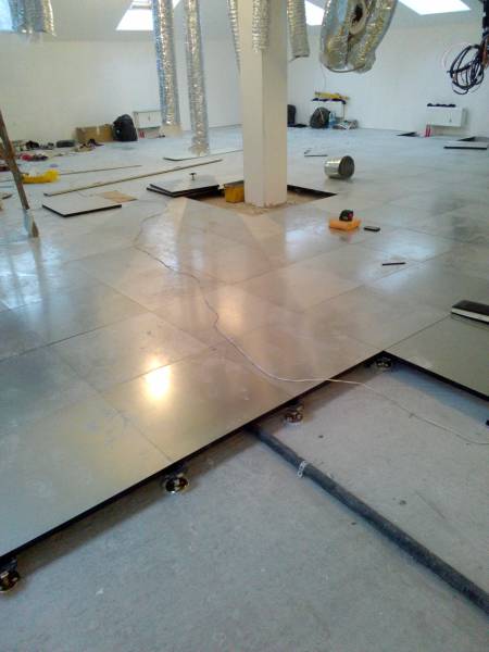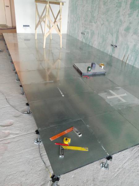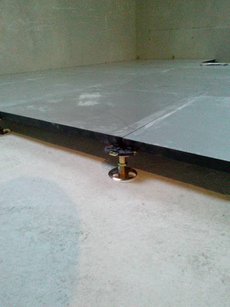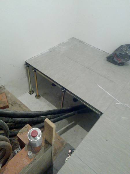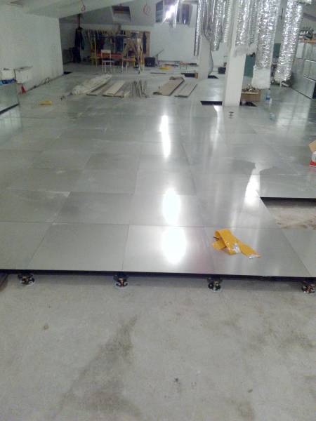Подъём уровня пола на 360мм в старом помещении Болерная в частном коттедже БЦ "Водный" Здесь по желанию Заказчика на наш фальшпол уложена ПВХ плитка 3 мм. Cерверная комната с антистатическим покрытием плит из кальций-сульфата.