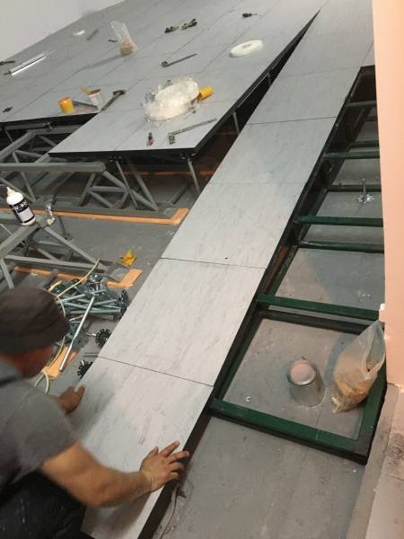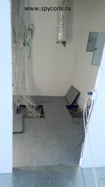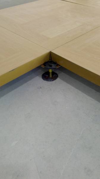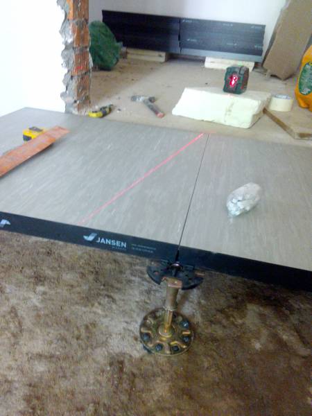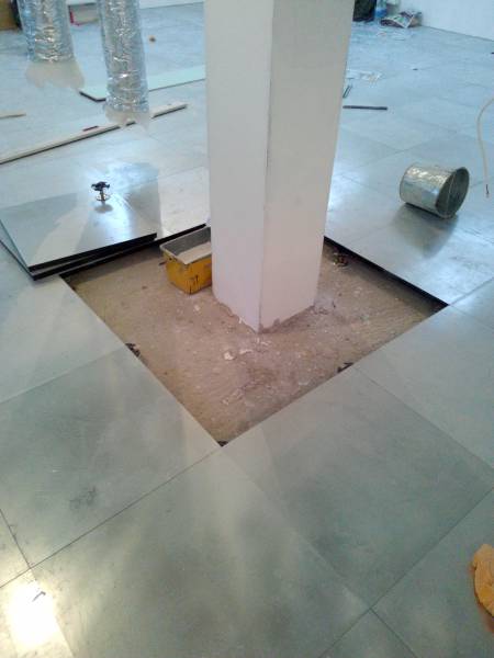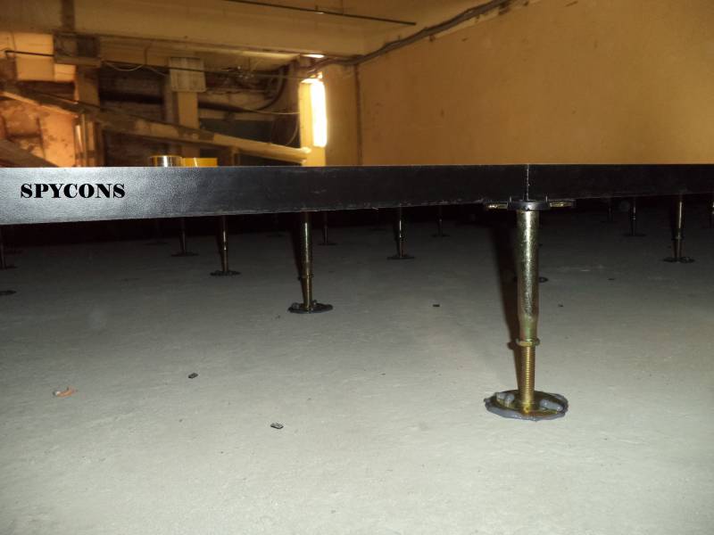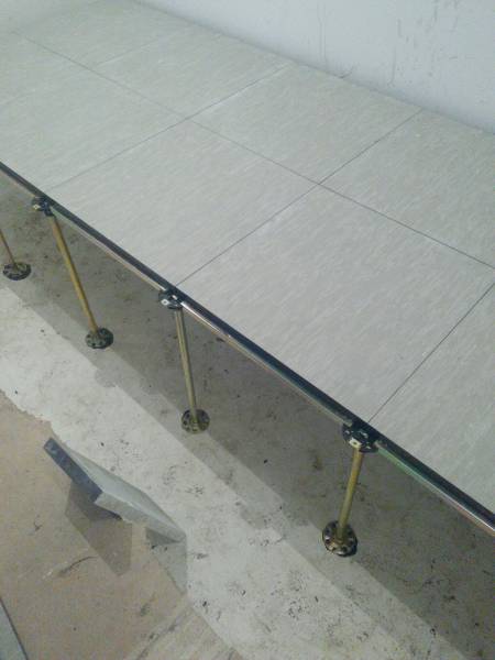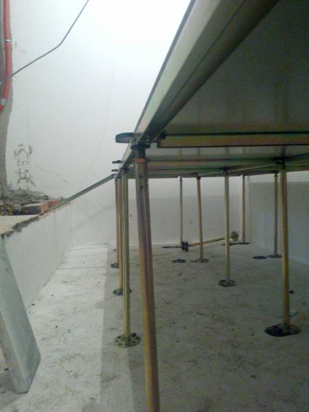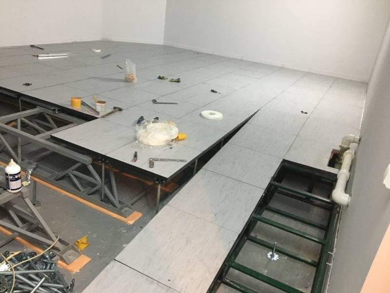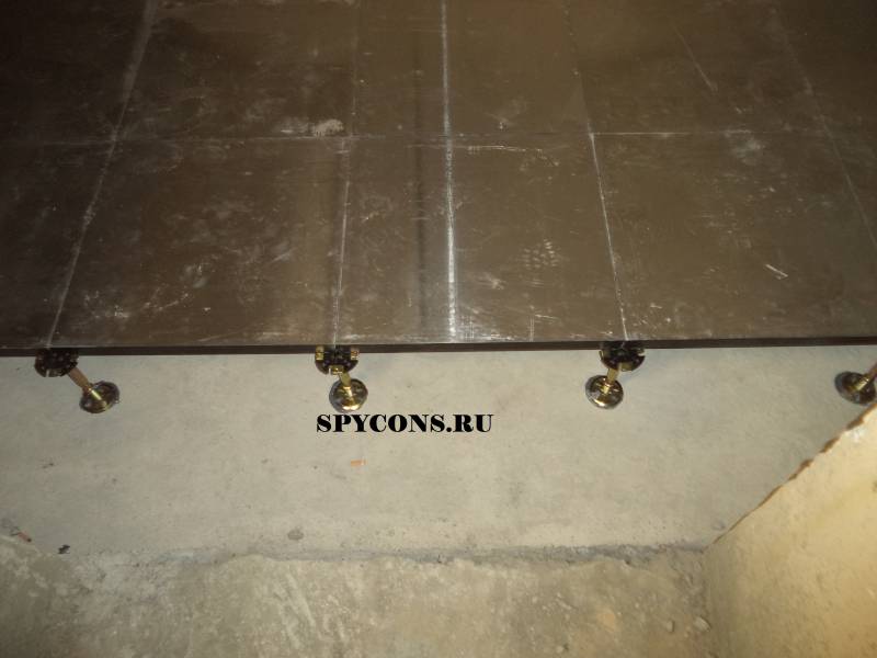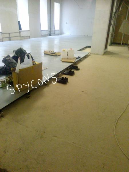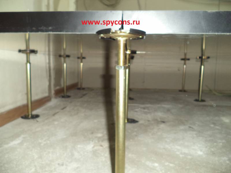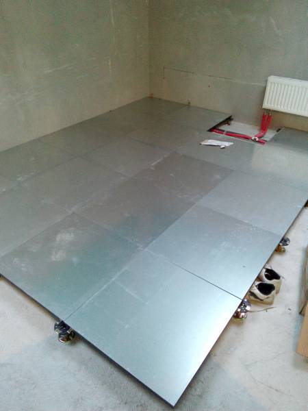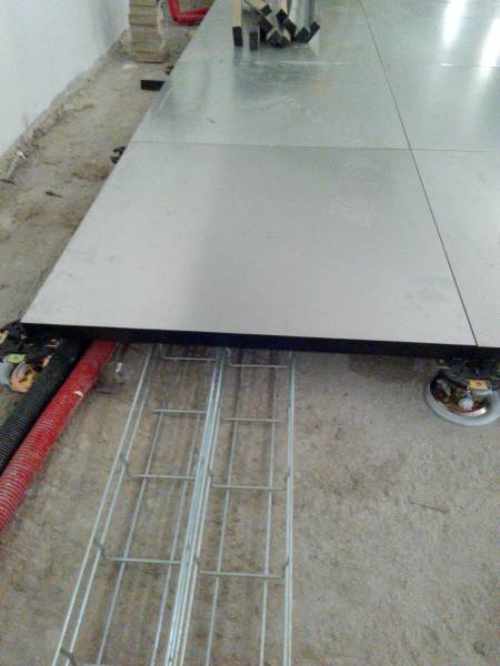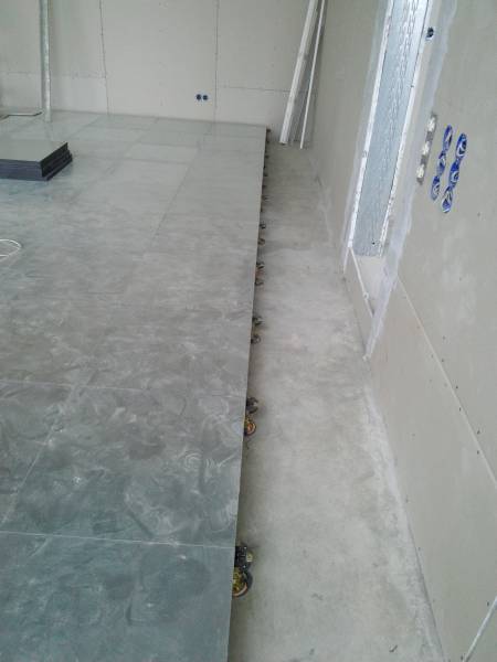 Подъём уровня пола на 360мм в старом помещении Болерная в частном коттедже БЦ "Водный" Здесь по желанию Заказчика на наш фальшпол уложена ПВХ плитка 3 мм. Cерверная комната с антистатическим покрытием плит из кальций-сульфата.