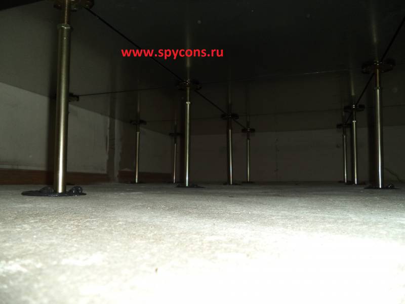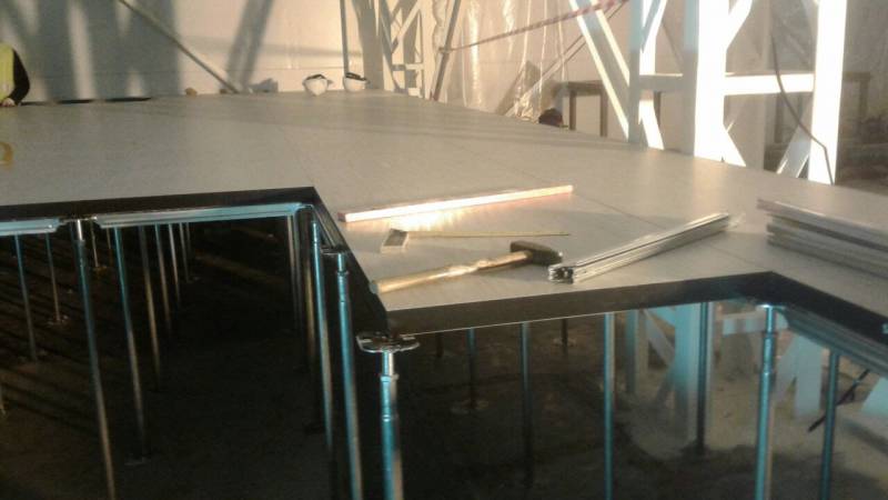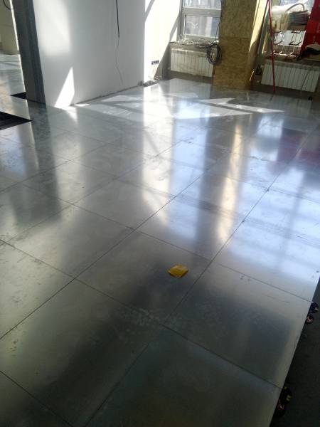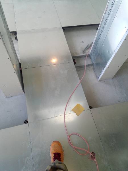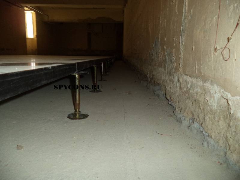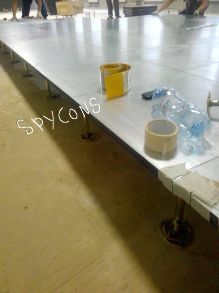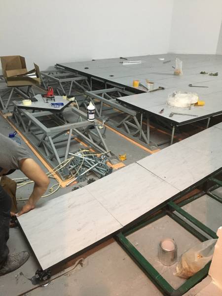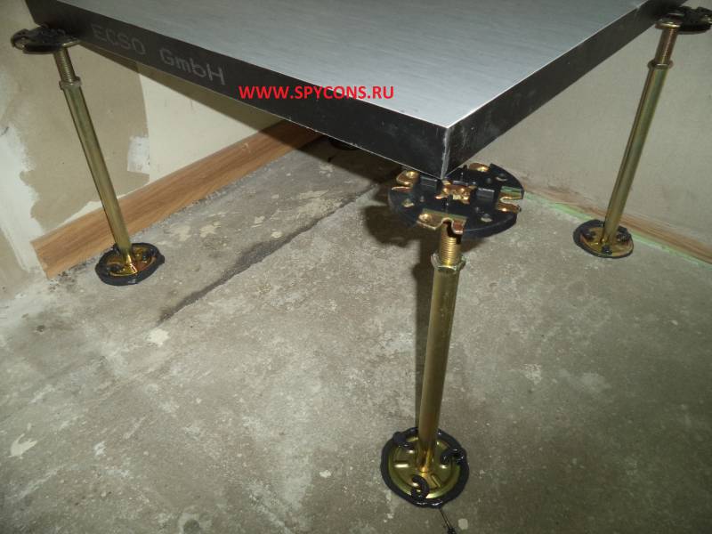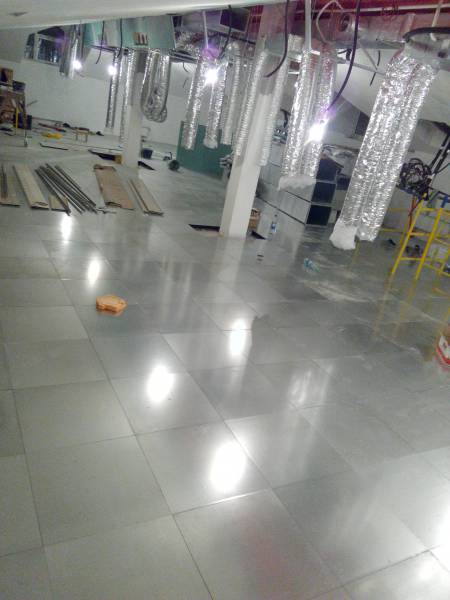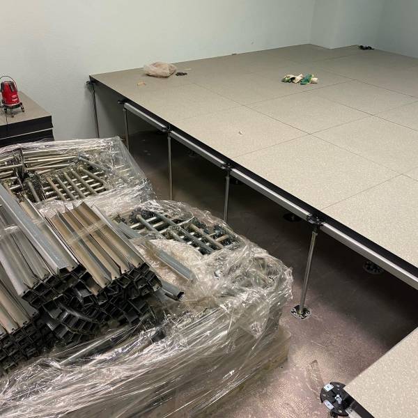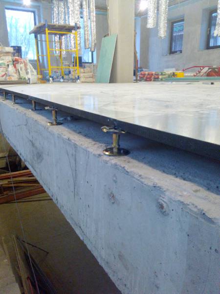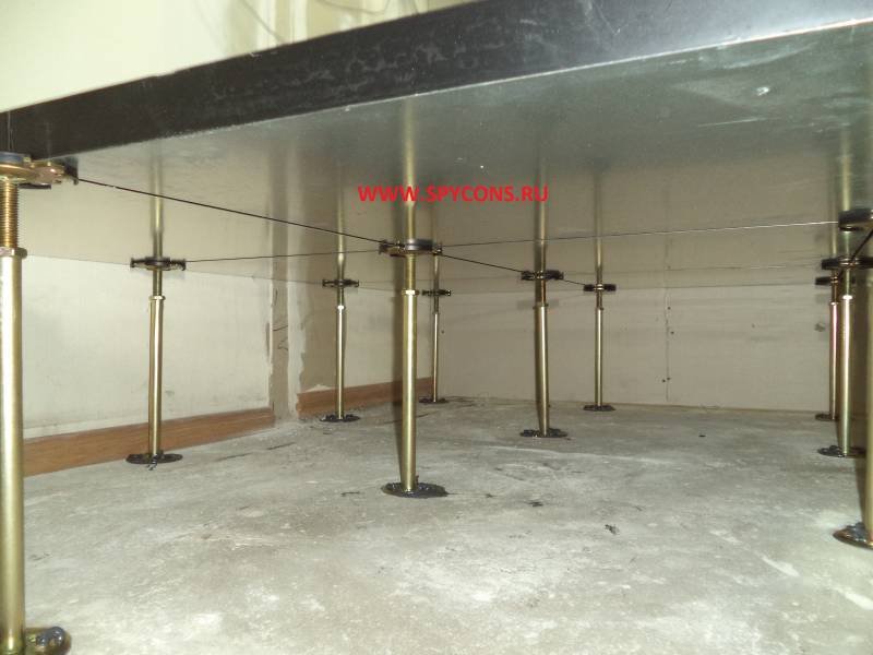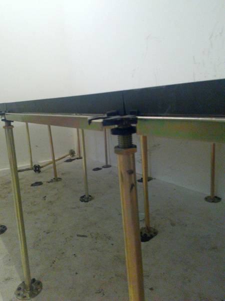 Подъём уровня пола на 360мм в старом помещении Болерная в частном коттедже БЦ "Водный" Здесь по желанию Заказчика на наш фальшпол уложена ПВХ плитка 3 мм. Cерверная комната с антистатическим покрытием плит из кальций-сульфата.