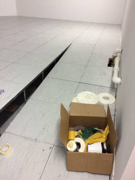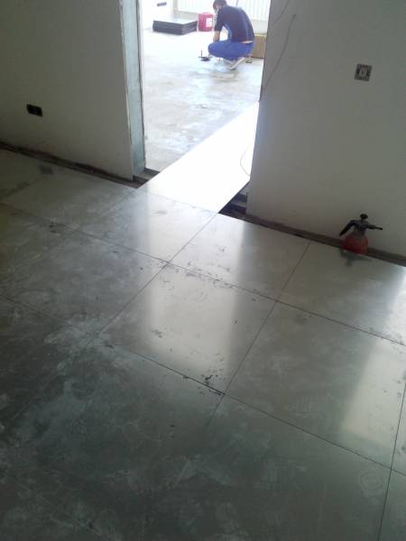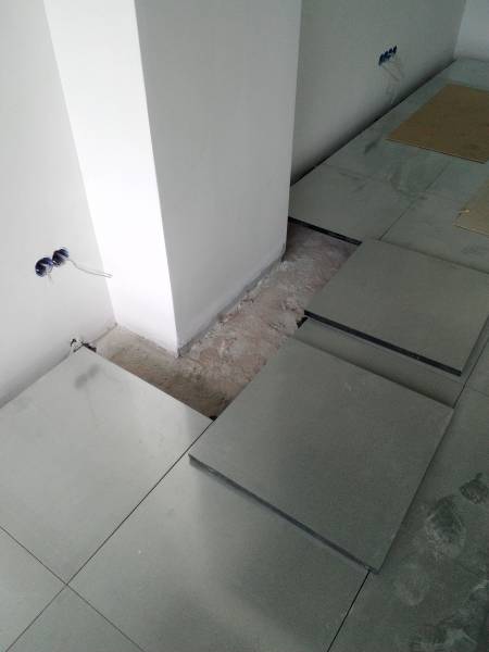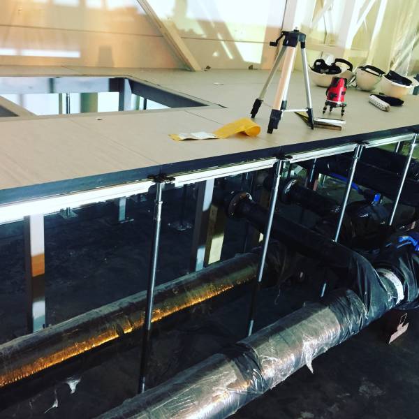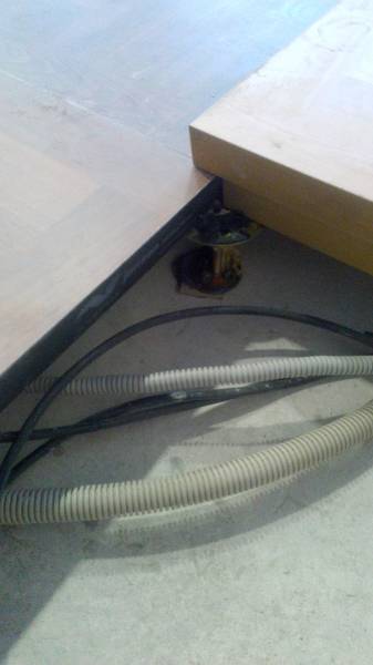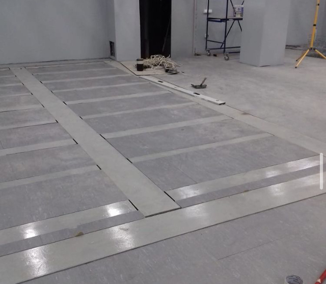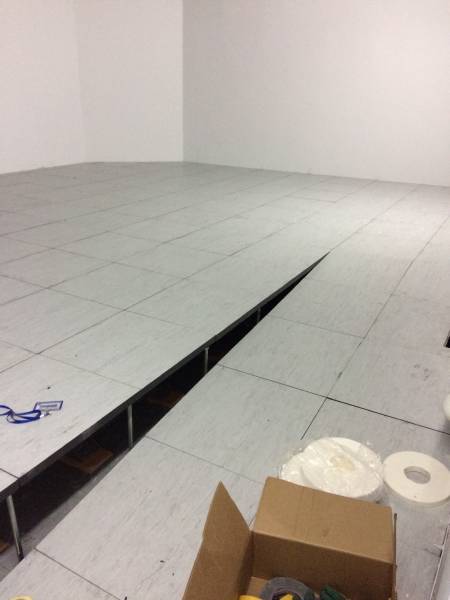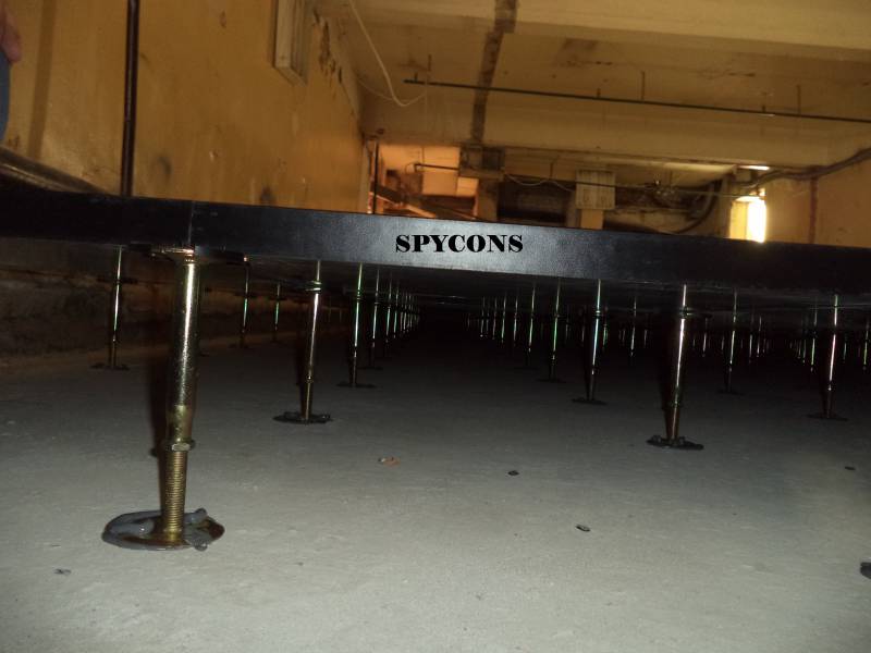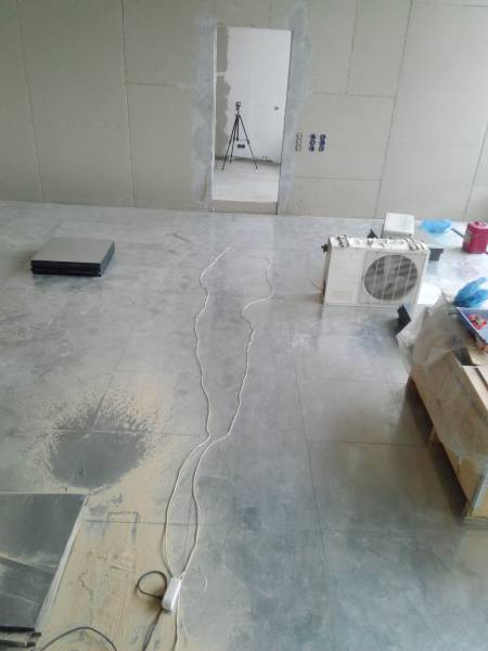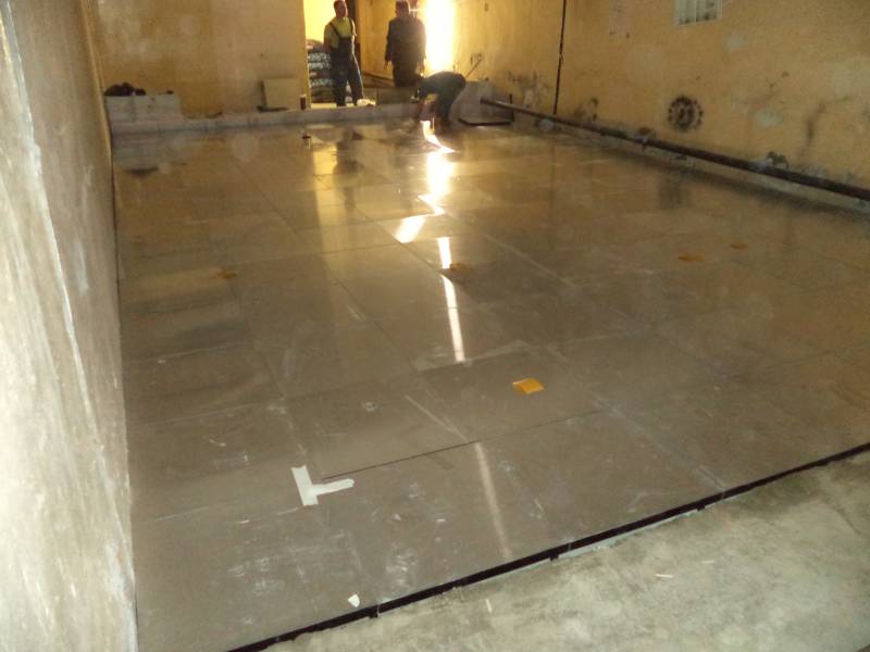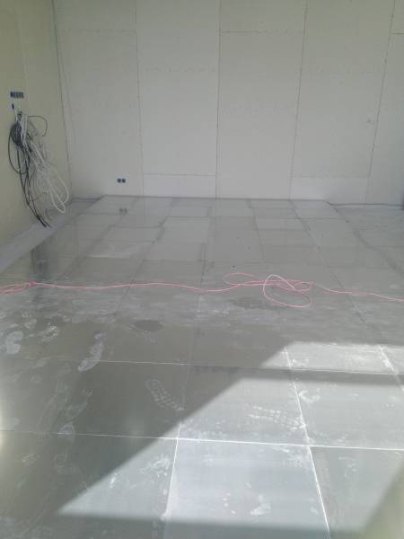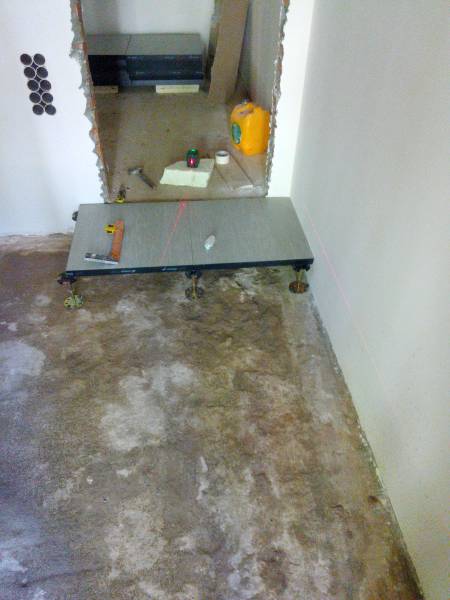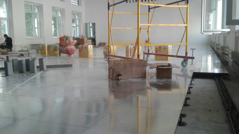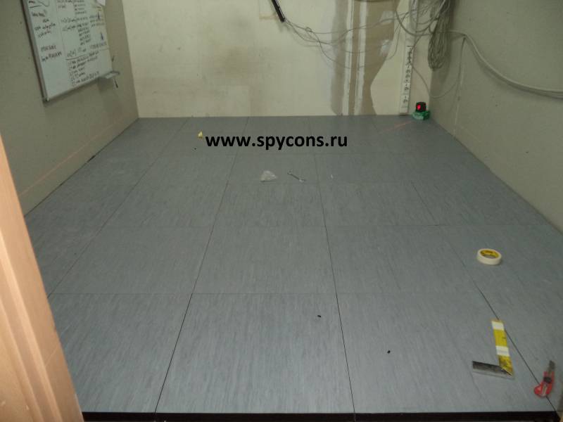 Подъём уровня пола на 360мм в старом помещении Болерная в частном коттедже БЦ "Водный" Здесь по желанию Заказчика на наш фальшпол уложена ПВХ плитка 3 мм. Cерверная комната с антистатическим покрытием плит из кальций-сульфата.