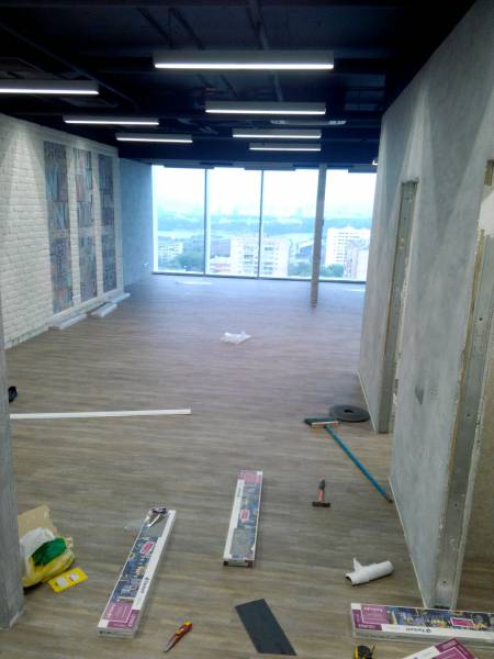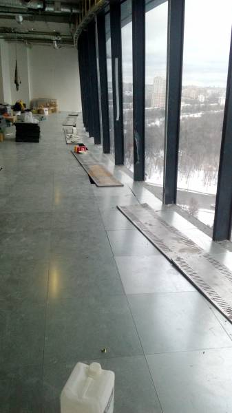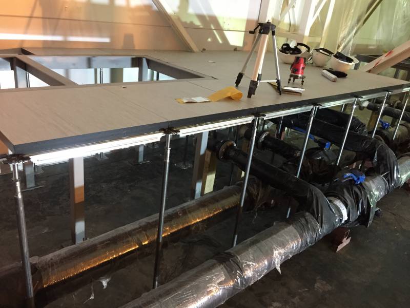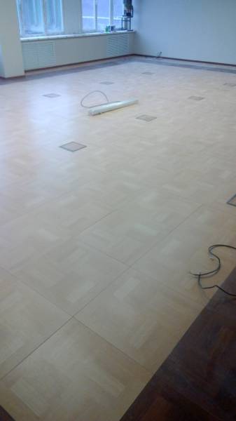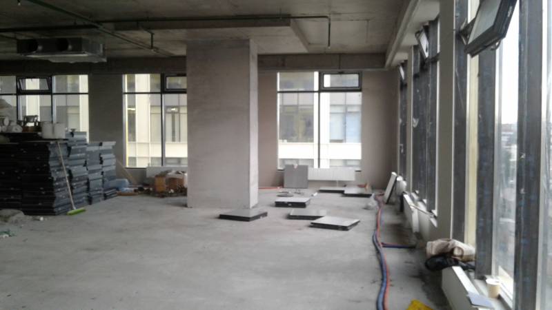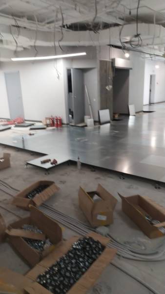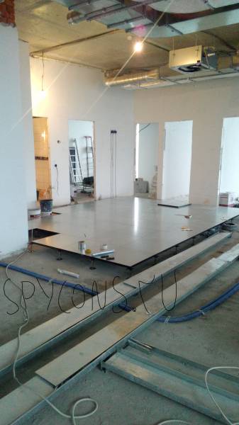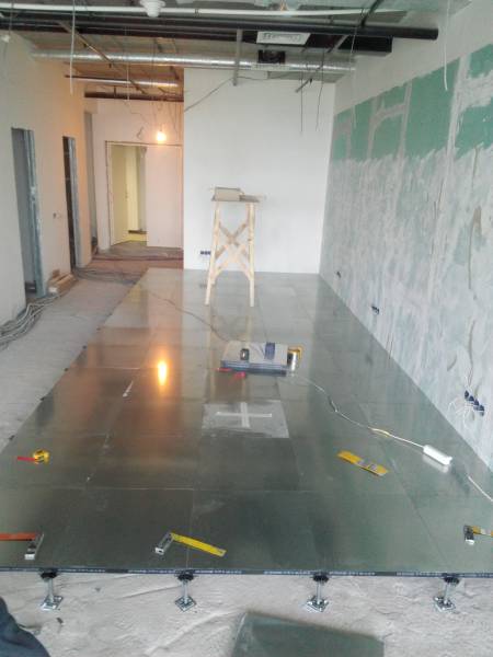 Офис площадью 1200 м2 монтаж фальшпола и укладка уоврового покрытия.