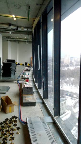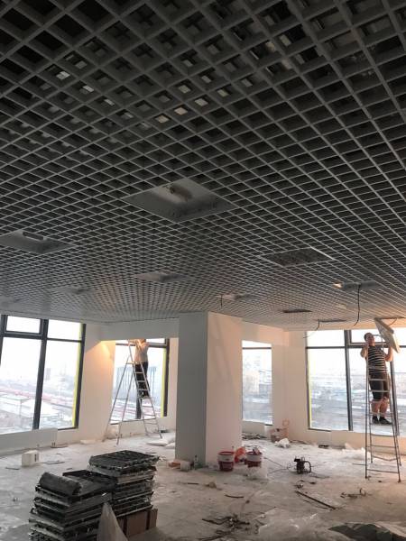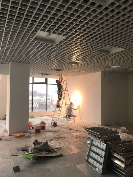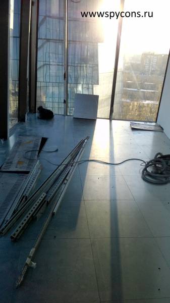 Монтаж фальшполов, ПВХ плитки и потолка грильятто на БЦ Савеловский Сити 430м2